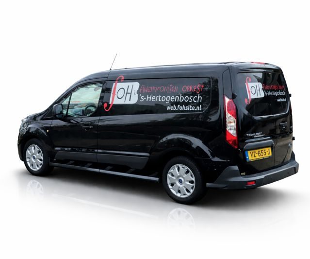 Wel zo gemakkelijk voor vervoer van instrumenten en natuurlijk goede reclame. In de omgeving van Den-Bosch en verre omstreken zie je onze eigen Ad in z'n FOH bus rijden